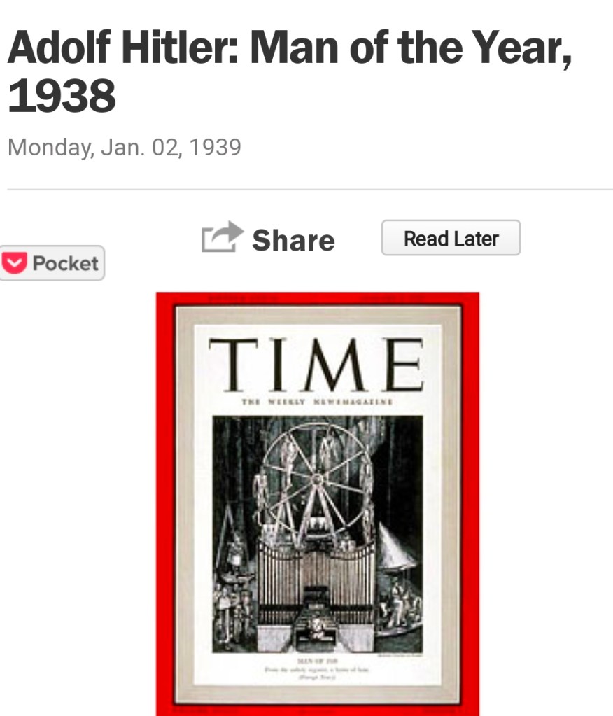 ಟೈಮ್ಸ್ ಪತ್ರಿಕೆ ಹಿಟ್ಲರನನ್ನು ವರ್ಷದ ವ್ಯಕ್ತಿಯಾಗಿ ಸಾರಿತ್ತು. ಜನ ಅವನಿಗೆ, ಅವನ ಕನಸಿನ ಲೋಕಕ್ಕೆ ಮರುಳಾಗಿದ್ದರು. ಜರ್ಮನ್ನರ ಆತ್ಮಾಭಿಮಾನವನ್ನು ಮೇಲೆತ್ತಿದ ಹಿರಿಮೆ ಆತನದ್ದು ಎಂದು ಸಾರಿದರು. ಬರ್ಲಿನ್ ನಲ್ಲಿ ಹಿಟ್ಲರನ ರ್ಯಾಲಿಗಳೇನು, ಅವುಗಳ ವೈಭವವೇನು, ಜನಸ್ತೋಮವೇನು, ಜನಪ್ರೀಯತೆಯ ತುತ್ತ ತುದಿಗೇರಿ ಅವನು ವಿಜೃಂಭಿಸಿದ್ದ. ಇಡೀ ದೇಶ ಆತನ ಮಾತಿಗೆ, ಚಿಂತನೆಗೆ ಮೋಹಿತಗೊಂಡಿತ್ತು. ಯಾವಾಗ ಒಂದು ದೇಶ ಒಬ್ಬ ವ್ಯಕ್ತಿಯನ್ನು ಅಥವಾ ಆಡಳಿತಗಾರನನ್ನು ದೇವಮಾನವನಂತೆ ಕಂಡು ಪೂಜಿಸಲು ಪ್ರಾರಂಭಿಸುತ್ತದೋ, ಯಾವಾಗ ಜನತೆ ಅವನ ಮಾತಿಗೆ ಬಲಿಯಾಗಿ “ಅಂಧ ಭಕ್ತ” ರಂತೆ ಅನುಸರಿಸಲು ಪ್ರಾರಂಭಿಸುತ್ತಾರೋ ಆವಾಗ ಆ ದೇಶ ಸರ್ವಾಧಿಕಾರದತ್ತ ಹೆಜ್ಜೆ ಹಾಕುತ್ತಿದೆ ಎನ್ನಬಹುದು.