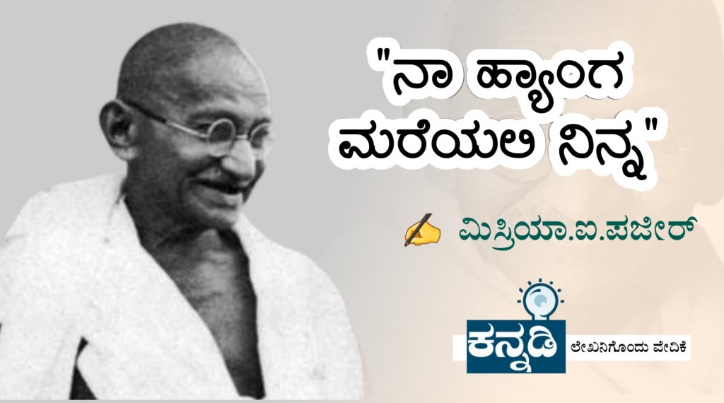 ಸತ್ಯ ನುಡಿಯುವವರನ್ನೂ, ಗಾಂಧಿ ನಡೆದು ತೋರಿಸಿದ ಅಹಿಂಸಾ ಮಾರ್ಗದಲ್ಲಿ ಹೋರಾಡುವವರನ್ನೂ ದೇಶದ್ರೋಹಿಗಳನ್ನಾಗಿಯೂ, ಸುಳ್ಳನ್ನೇ ಸತ್ಯವೆಂಬಂತೆ ಬಿಂಬಿಸಿ ಹಿಂಸೆಯನ್ನೇ ಬಂಡವಾಳವನ್ನಾಗಿಸಿಕೊಂಡವನ್ನು ದೇಶಭಕ್ತರನ್ನಾಗಿಯೂ ಕಾಣುವ ಈ ದುರಂತ ದಿನಗಳಲ್ಲಿ ಬಾಲ್ಯಕಾಲದಲ್ಲಿ ನನ್ನ ಮನದಾಳದಲ್ಲಿ ಅಚ್ಚೊತ್ತಿದ ಗಾಂಧಿ ತಾತ ಕಾಡತೊಡಗಿದ್ದಾನೆ..ನಾನು ಪ್ರಾಥಮಿಕ ಶಾಲೆಯಲ್ಲಿ ಕಲಿಯುತ್ತಿರುವಾಗ ಗಾಂಧೀಜಿಯವರ ಹೆಸರು ಕೇಳದ ದಿನಗಳೇ ಇರಲಿಲ್ಲ. ಮಕ್ಕಳ ಹಾಡಿನ ಮೂಲಕವೋ, ಅಭಿನಯ ಗೀತೆಗಳ ಮೂಲಕವೋ ಒಂದಲ್ಲ ಒಂದು ರೀತಿಯಲ್ಲಿ ಬಾಪೂಜಿಯ ಹೆಸರು ಹೇಳುತ್ತಿದ್ದೆವು. ನಾನು ಗಾಂಧೀಜಿಯ ಕುರಿತಾಗಿ ಮೊದಲು ಕಲಿತ ಹಾಡು ‘ಗಾಂಧೀ ತಾತ ನನ್ನಜ್ಜ ಬಗ್ಗಿ ಬಗ್ಗಿ ನಡೆದಿದ್ದ…..