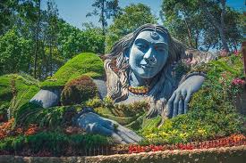 a public garden perched on the peaks of Kemmanagundi. There are pathways cut out of rock, an orchid house with several exotic species of flowers. A lady is beautifully sculpted and grass flowers covered her is the absolute beauty. When we went here, it was closed as it closes at 6 pm, so We had to see it from outside but still the picture had a go.