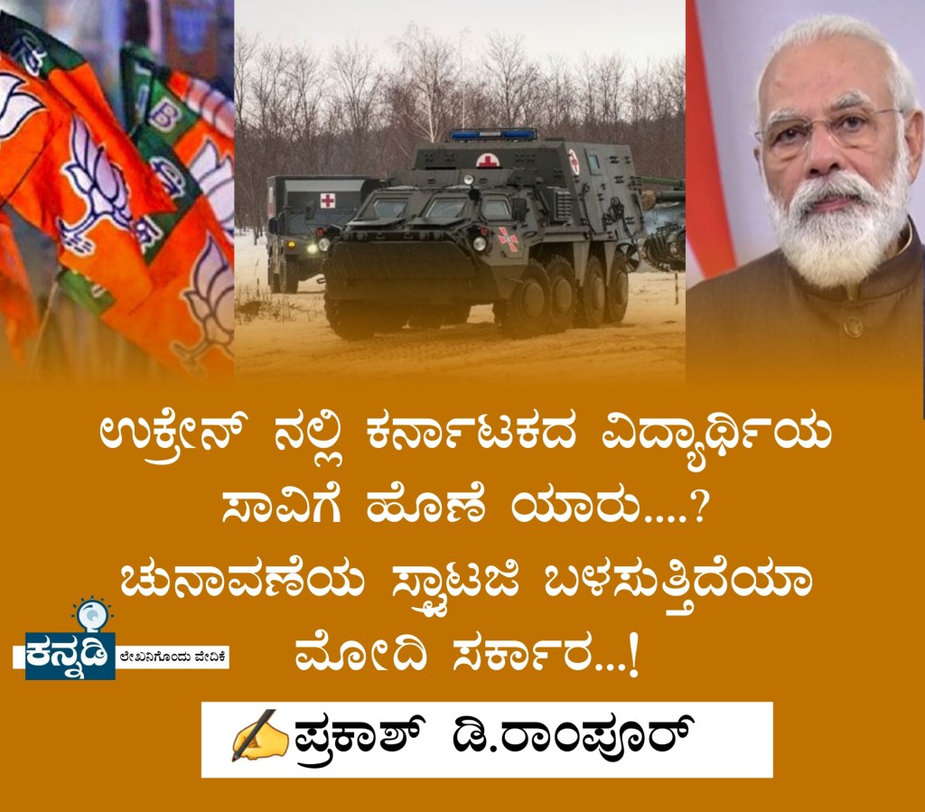 ರಷ್ಯಾ-ಉಕ್ರೇನ್ ಯುದ್ಧದಲ್ಲಿ ಕರ್ನಾಟಕದ ವೈದ್ಯಕೀಯ ವಿದ್ಯಾರ್ಥಿ ಬಲಿಯಾಗಿದ್ದಾನೆ. ಉಕ್ರೇನ್ ನ ಕೀವ್ ಹಾಗೂ ಖಾರ್ಕಿವ್ ನಗರದಲ್ಲಿ ರಷ್ಯಾ ಸೇನೆ ಸುತ್ತುವರೆದಿದೆ. ಕ್ಲಸ್ಟರ್ ಬಾಂಬ್ ಸ್ಫೋಟಿಸಿ, ಉಕ್ರೇನ್ ನಾಗರಿಕರನ್ನ ಹತ್ಯೆ ಮಾಡಲಾಗ್ತಿದೆ. ಕೀವ್, ಖಾರ್ಕಿವ್ ನಗರದಲ್ಲಿ 20-30 ಸಾವಿರ ಭಾರತೀಯ ವಿದ್ಯಾರ್ಥಿಗಳಿದ್ದಾರೆ. ಇದ್ರಲ್ಲಿ ಕರ್ನಾಟಕದ ವಿದ್ಯಾರ್ಥಿಗಳು ಕೂಡ.. ಬಹುತೇಕ ವಿದ್ಯಾರ್ಥಿಗಳು MBBS ವ್ಯಾಸಂಗಕ್ಕಾಗಿಯೇ ಉಕ್ರೇನ್ ಗೆ ಹೋಗಿದ್ದು. ನೇರವಾಗಿ ವಿಚಾರಕ್ಕೆ ಬರೋಣ.. ಭಾರತೀಯ ವಿದ್ಯಾರ್ಥಿಗಳನ್ನ ಪೋಲೆಂಡ್, ಹಂಗೇರಿ, ರೋಮೇನಿಯಾ (ಉಕ್ರೇನ್ ನ ಪಶ್ಚಿಮ ಭಾಗ) ಬಾರ್ಡರ್ ಗಳಿಂದ ಏರ್ ಲಿಫ್ಟ್ ಮಾಡಲಾಗ್ತಿದೆ. ಈ ಪ್ರದೇಶಗಳಲ್ಲಿ ಯುದ್ದ ನಡೆಯುತ್ತಿಲ್ಲ.. ಜನಜೀವನ ಸಹಜ ಸ್ಥಿತಿಯಲ್ಲಿದೆ. ಈ ಭಾಗದಿಂದ ಏರ್ ಲಿಫ್ಟ್ ಮಾಡೋದು ಸಾಹಸನಾ ಅಂತ ಅವಲೋಕಿಸಿದಾಗ ಖಂಡಿತ ಇಲ್ಲ ಅನ್ನುತ್ತೆ ಸ್ಥಿತಿಗತಿಗಳು. ವಾಸ್ತವವಾಗಿ ಆಪತ್ತಿನಲ್ಲಿರೋರು, ಯಾವ ಕ್ಷಣದಲ್ಲಾದ್ರೂ ಜೀವವನ್ನ ಕಳೆದುಕೊಳ್ಳುವ ಆತಂಕ, ರಿಸ್ಕ್ ನಲ್ಲಿರುವವರು ಕೀವ್, ಖಾರ್ಕಿವ್ ನಗರಗಳಲ್ಲಿ ಇರುವ ಸಾವಿರಾರು ವಿದ್ಯಾರ್ಥಿಗಳು.. ಈ ನಗರಗಳಿಂದ ವಿದ್ಯಾರ್ಥಿಗಳನ್ನ ಏರ್ ಲಿಫ್ಟ್ ಮಾಡಬೇಕಾಗಿರೋದು.. ಆದ್ರೆ ಭಾರತ ಸರ್ಕಾರ ಇದಕ್ಕೆ ಮನಸ್ಸು ಮಾಡ್ತಿಲ್ಲ.. ಯುದ್ಧದ ರಣಾಂಗಣವಲ್ಲದ ಉಕ್ರೇನ್ ಗಡಿಯಿಂದ ಭಾರತೀಯರನ್ನ ಏರ್ ಲಿಫ್ಟ್ ಮಾಡಿ ಕೇಂದ್ರ ಸರ್ಕಾರ ಪುಕ್ಕಟೆ ಕ್ರೆಡಿಟ್ ಪಡೆಯುತ್ತಿದೆ.